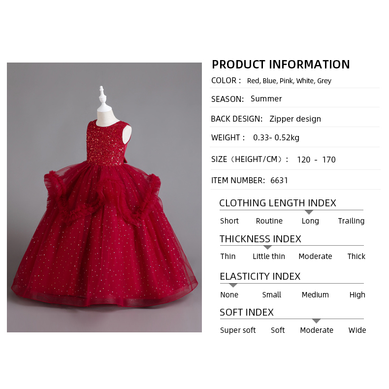 3-14 Years Old Long Dress Wedding Sequined Gowns Pink Red White Stage Costume Kids Girl Princess Dresses