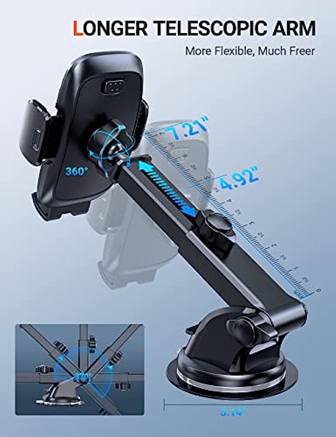 ▶[MILITARY GRADE STURDINESS TEST]: The 2022 enhanced TORRAS cell phone holder for car passed the military-grade sturdiness test! Absolutely sturdier 20 x than normal ones! The suction cup can withstand the temperature from -20℃(-4°F) to 95℃/(203°F), also be reusable! You can stick it on your car dash or windshield. Also, you can get a sticky pad to protect your car dash. Completely friendly, hands-free and views-adjustable! ▶[EASY&REAL HANDS-FREE]: Release easily with one button, clamp fast with one hand! ▶The car phone holder mount is suitable for all kinds of mobile phones with brand thick cases, Battery cases, Ring cases and it is exceptionally sturdy to hold your phone tightly. Like iPhone SE /11/ 11 Pro/11 Pro max /x/ xs max/xr/8 plus/8/7/6s plus, Samsung galaxy s21 /s20/s20+/s20 ultra 5G/note 20/10 plus/10/9 plus/9/s10/s9/a10e, Google Pixel 3a/4 XL, LG v20, One Plus and more. ▶[4 IN 1 ULTIMATE CAR MOUNT]: Are you not sure which installation method is better for your car? No worries! The 4 in1 phone mount for car can be flexible placement! Dashboard & Windshield & Air Vent & Home, all places work perfectly! Also, with low temperatures in winter and heat in summer, you can choose to avoid the issue caused by environmental influences. ▶[2022 ENHANCED VENT CLIP]: You can screw the nut to fix the clamp freely, the tighter you screw, the sturdier it will be! Its two small arms are just enough to press against the upper and lower vent blades to form a stable triangular structure and lighten the load on the middle one, with no damage to your car. This clip more than 10X sturdier than normal ones. It fits perfectly for your car no matter what the thicker blades vents or vertical ones. ▶[WHAT YOU GET]: TORRAS ensures you with an 36-month pleasant experience and top customer service. Please feel free to let us know if have any questions about this car phone mount. With the car holder for cell phone, you can get a package including 1 enhanced suction cup, 1 sticky pad, 1 strong air vent clip, and 1 user manual. Note: The sticky pad just can be used once, please think twice to stick it.