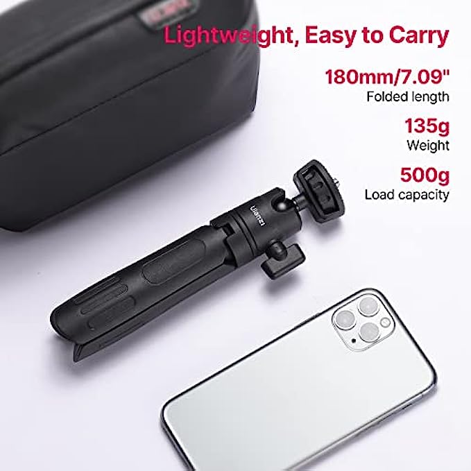 Strong Stability: Ulanzi M12 mini tripod has non-slip rubber pads on the feet, which can be stabilized on the ground or on the table. The load-bearing capacity is 500g after expansion. In addition, the handle of the tripod also adopts a non-slip design