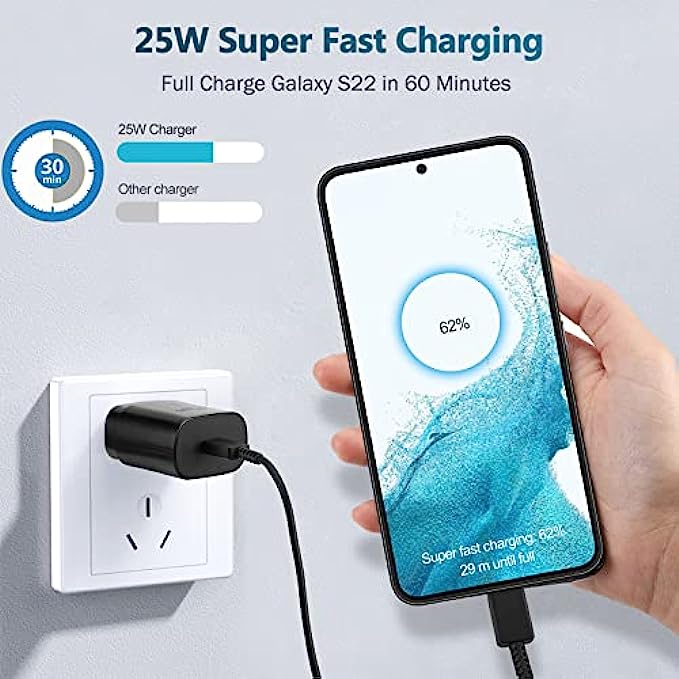 USB C Charger, 25W Super Fast Charger Type C Wall Charger Block with 5ft Android Phone Charger Cable for Samsung Galaxy S22/S22 Ultra/S22+/S21/S21 Ultra/S21+/S20/Note 10/Note 20/Z Fold3/Z Flip3