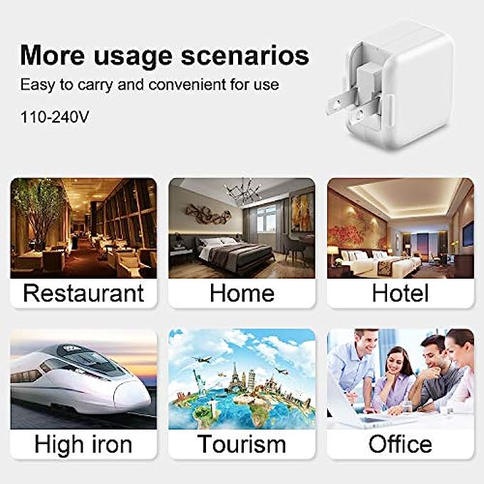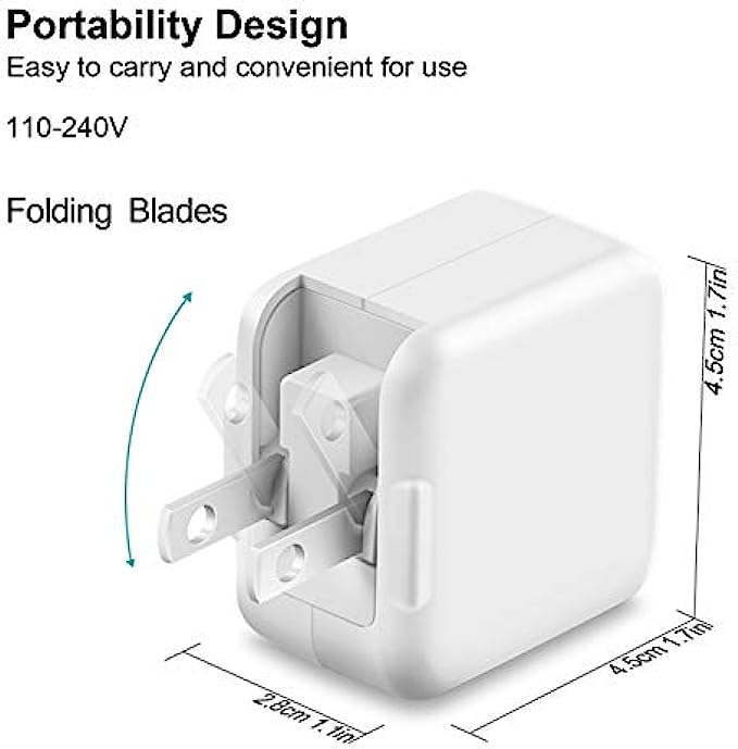 【USB Fast Charger for iPad iPhone】- iPad iPhone Charger equipped with 12W USB power delivery wall plug, Quick-Charge USB port provides Max 12W output power, charge your device up to 2.5x faster than original 5W charger, charging your iPhone up to 50% in just 45 minutes, saving over 1hrs for you.